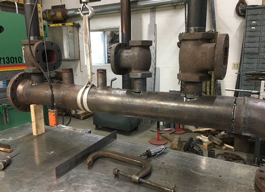 The two projects we completed for HSB were a boiler manifold feature piece and an accented coffee table. These items utilized reconstructed boiler manifold carcasses from the historic Hemingway and Bartlett silk manufacturing company in Watertown, CT, built-in 1888. To complement these industrial elements, we crafted live edge and round tops using Red Oak slabs rescued from a felled tree sourced directly from the iconic Elizabeth Park in Hartford—these thoughtful combinations of materials brought history and local pride into the heart of HSB's Innovation Center.